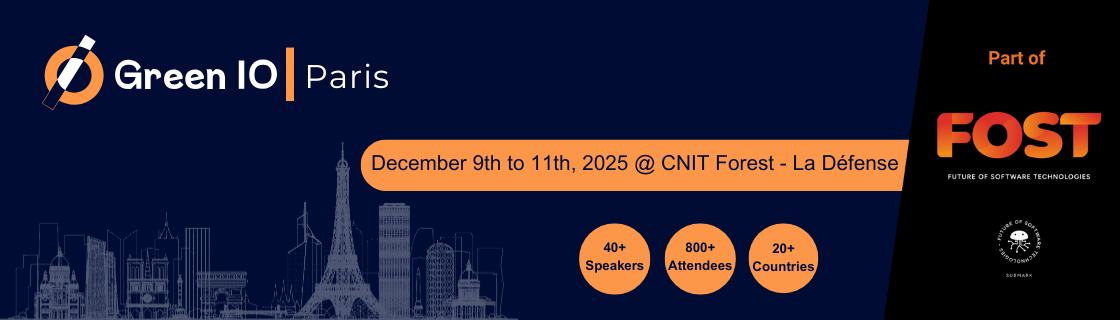 Part of the massive federation of Tech event "Future of Software Technology", Green IO will gather 800+ responsible technologists from 9th to 11th December 2025 in Paris (CNIT - La Défense) to Build European Green IT.
