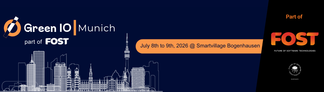 Part of the massive federation of Tech events "Future of Software Technologies", Green IO Munich will gather +250 responsible technologists from 8 to 9 June 2026 in the smartvillage Bogenhausen.